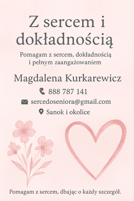 Z sercem i dokładnością – opieka nad seniorami i usługi sprzątające (Sanok i okolice)